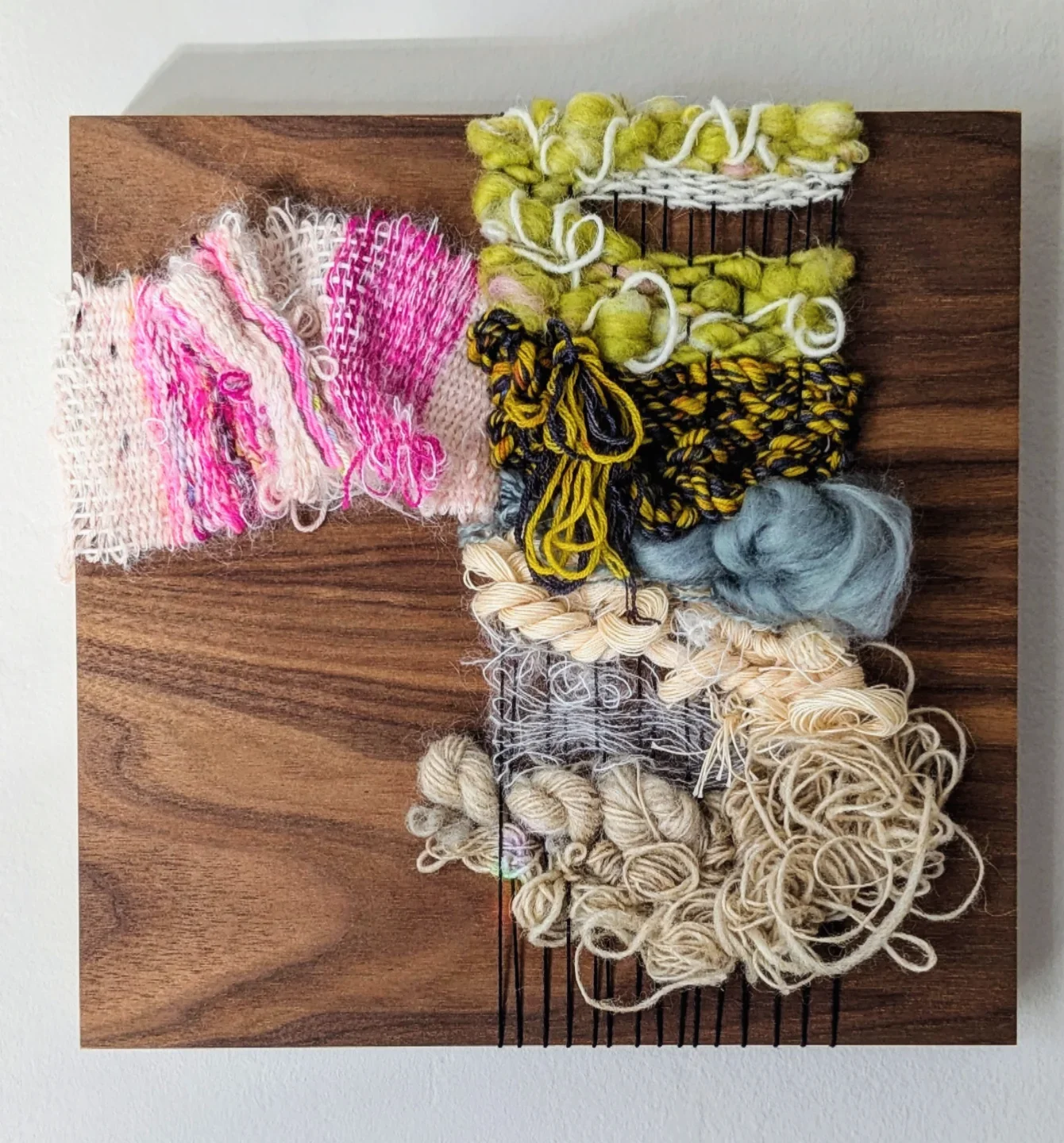 It took some time to find the thing that makes me feel the most like me. Now, the path ahead is clear. I’m just a woman in a studio, but the art is all of us. My woven works share stories of motherhood and vulnerability. You can count on these pieces to be bold, maximalist, and notably feminist—exploring the power of fiber to both comfort and evoke. I often work with found and recycled materials, and incorporate my own small-batch handspun yarns.